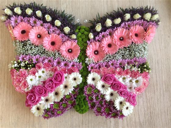 A beautiful floral butterfly funeral display measuring 2ft by 2ft.